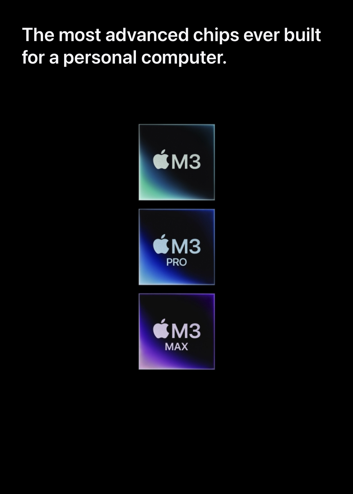 Apple-ը թողարկեց նոր MacBook Pro-ն 14 և 16 դյույմ էկրանի չափերով: Այս մոդելները աշխատում են M3, M3 Pro և M3 Max նոր գերարագ չիպերով: Այս մոդելները 2,5 անգամ ավելի արագ են M1 Max չիպից: MacBook Pro-ն ունի ամենաերկար մարտոցի կյանքը Mac-երի մեջ` մինչև 22 ժամ: